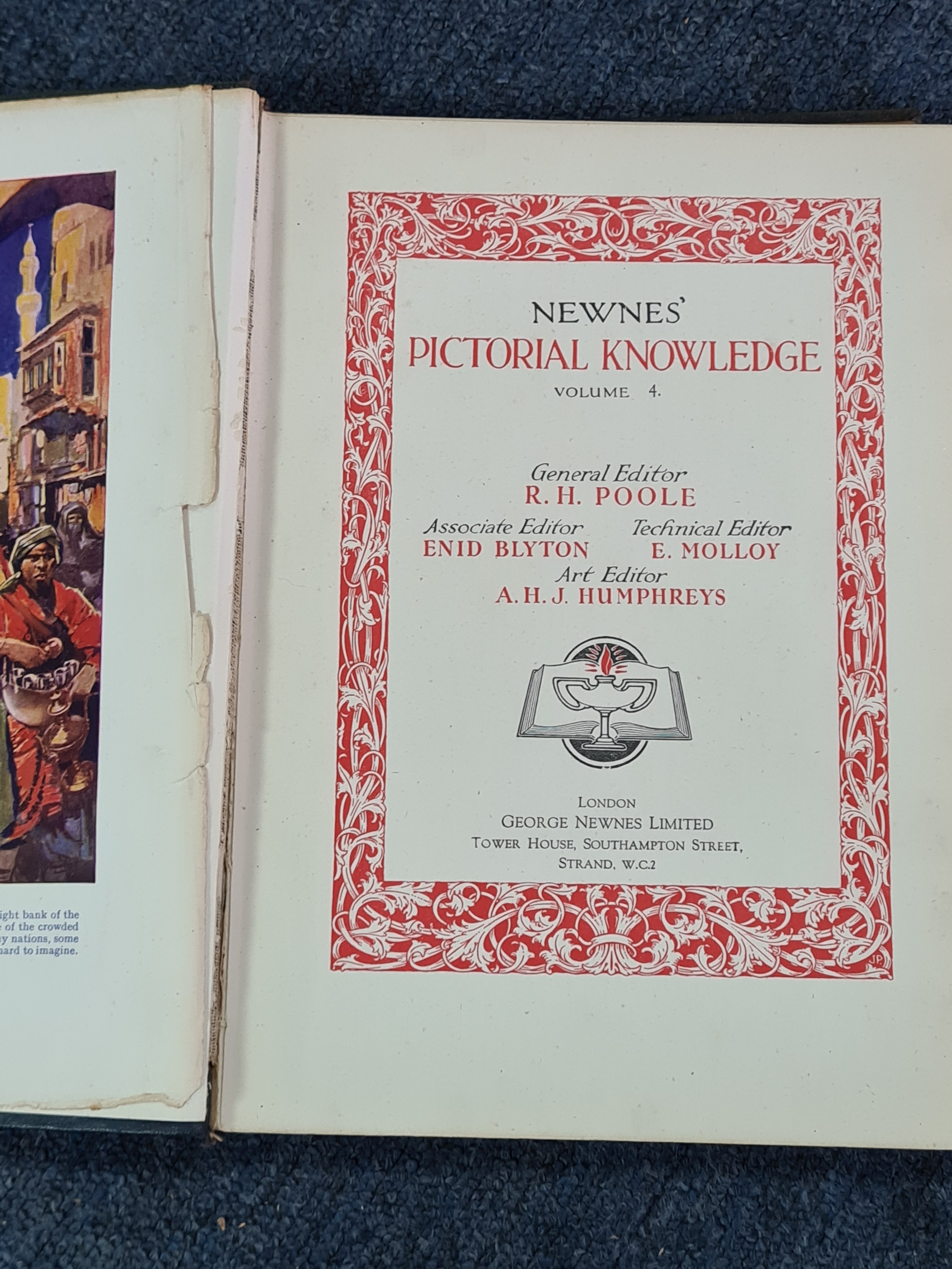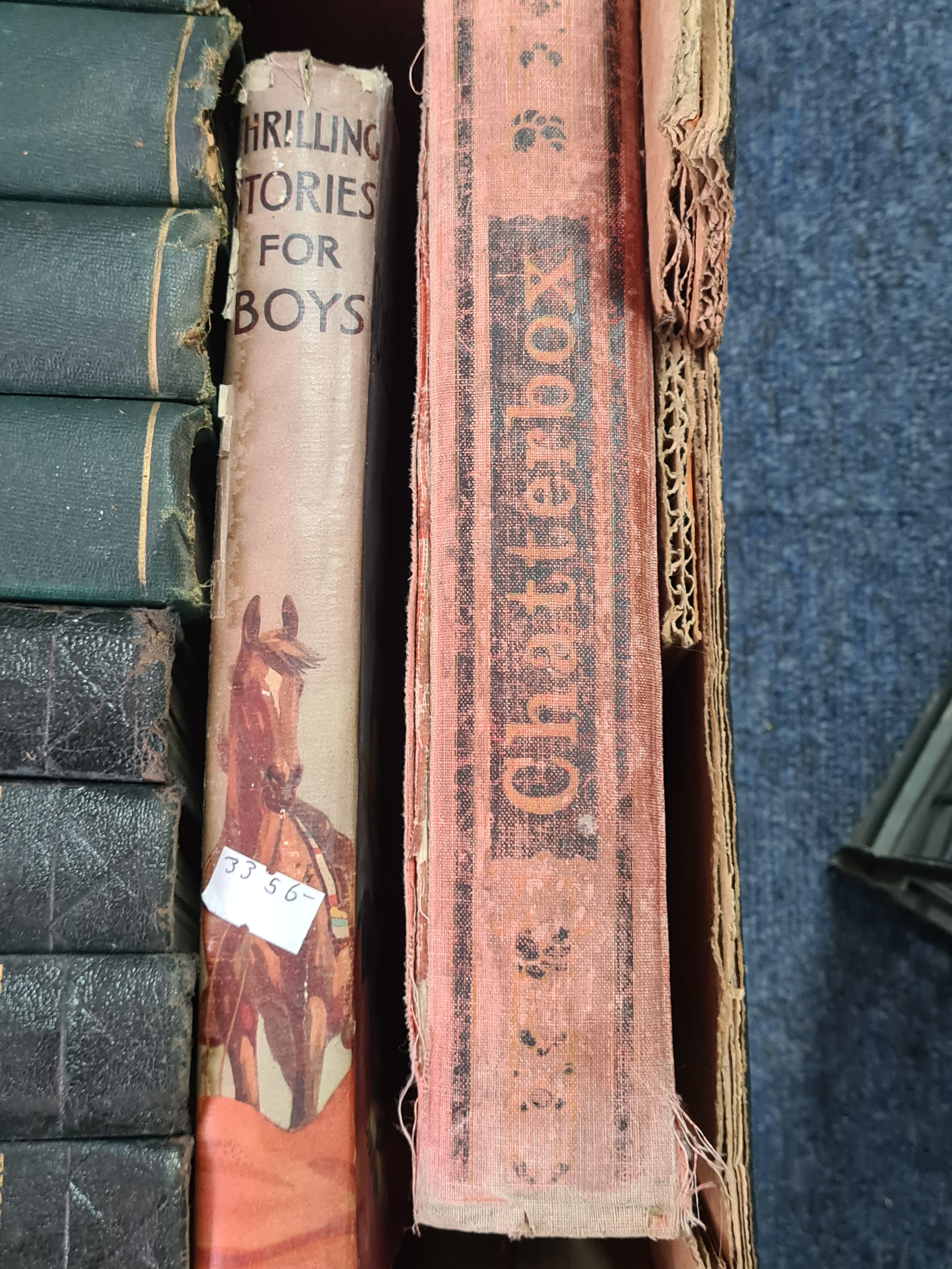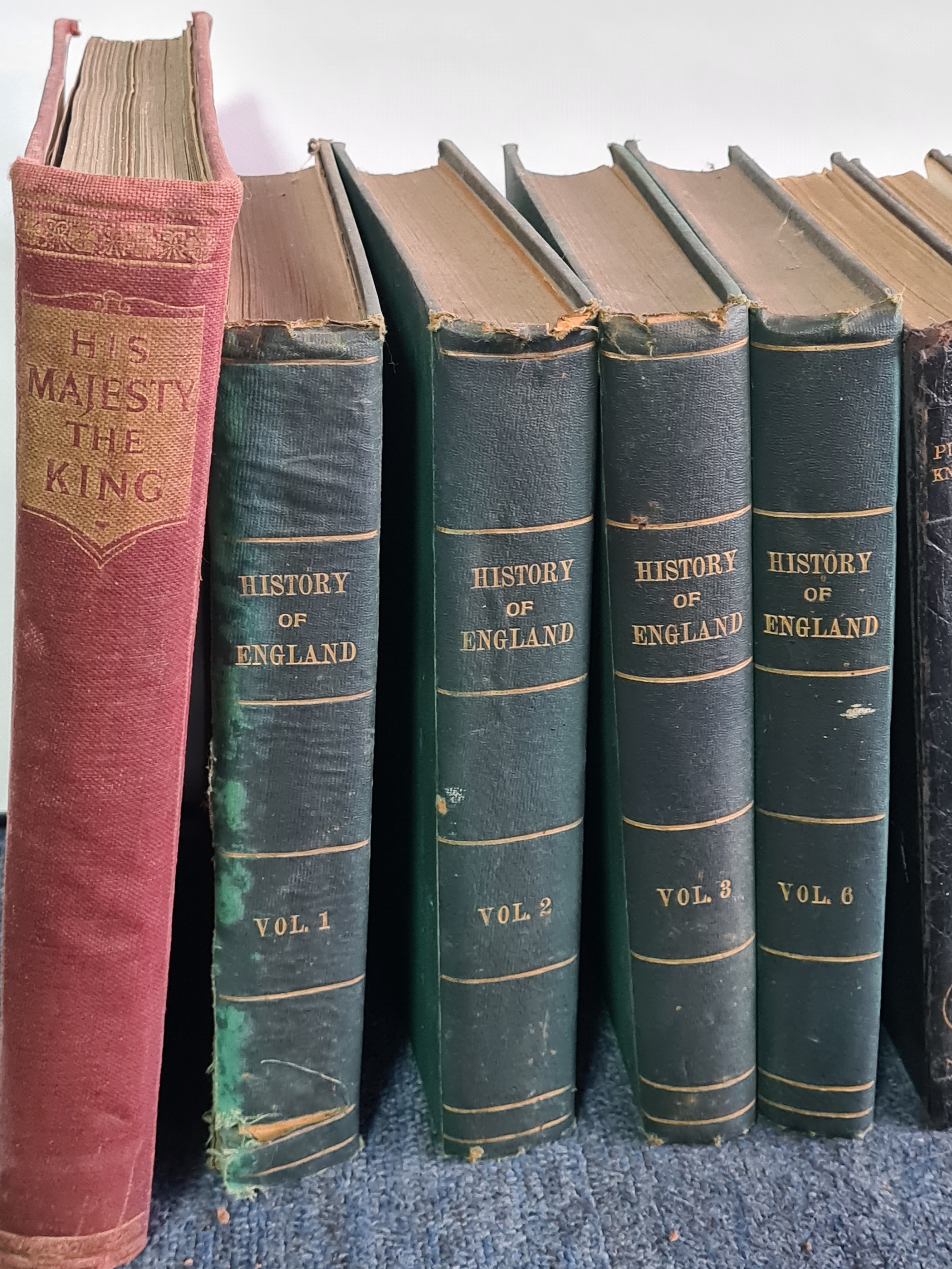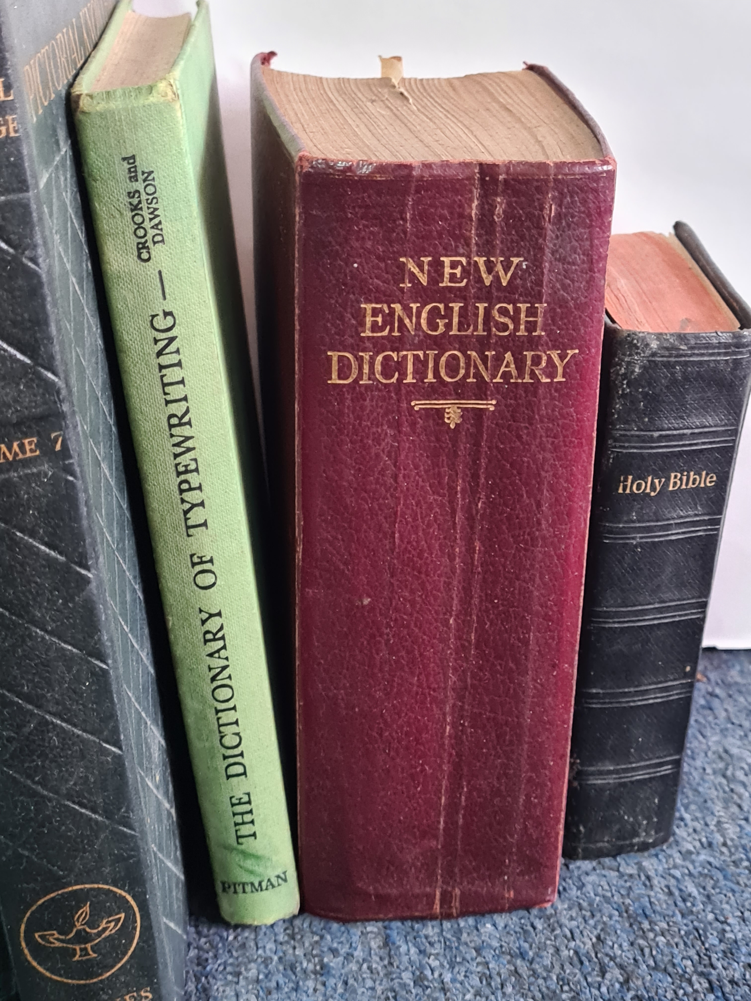A collection of 12 vintage hard back books to include: 25 years of His Majesty King George V; History of England Vol 1,2,3 &6; Pictorial Knowledge Vol 1,4,6 &7; Dictionary of Typewriting, a Dictionary and a Bible. Also included are a few books of fiction to include Dickens.