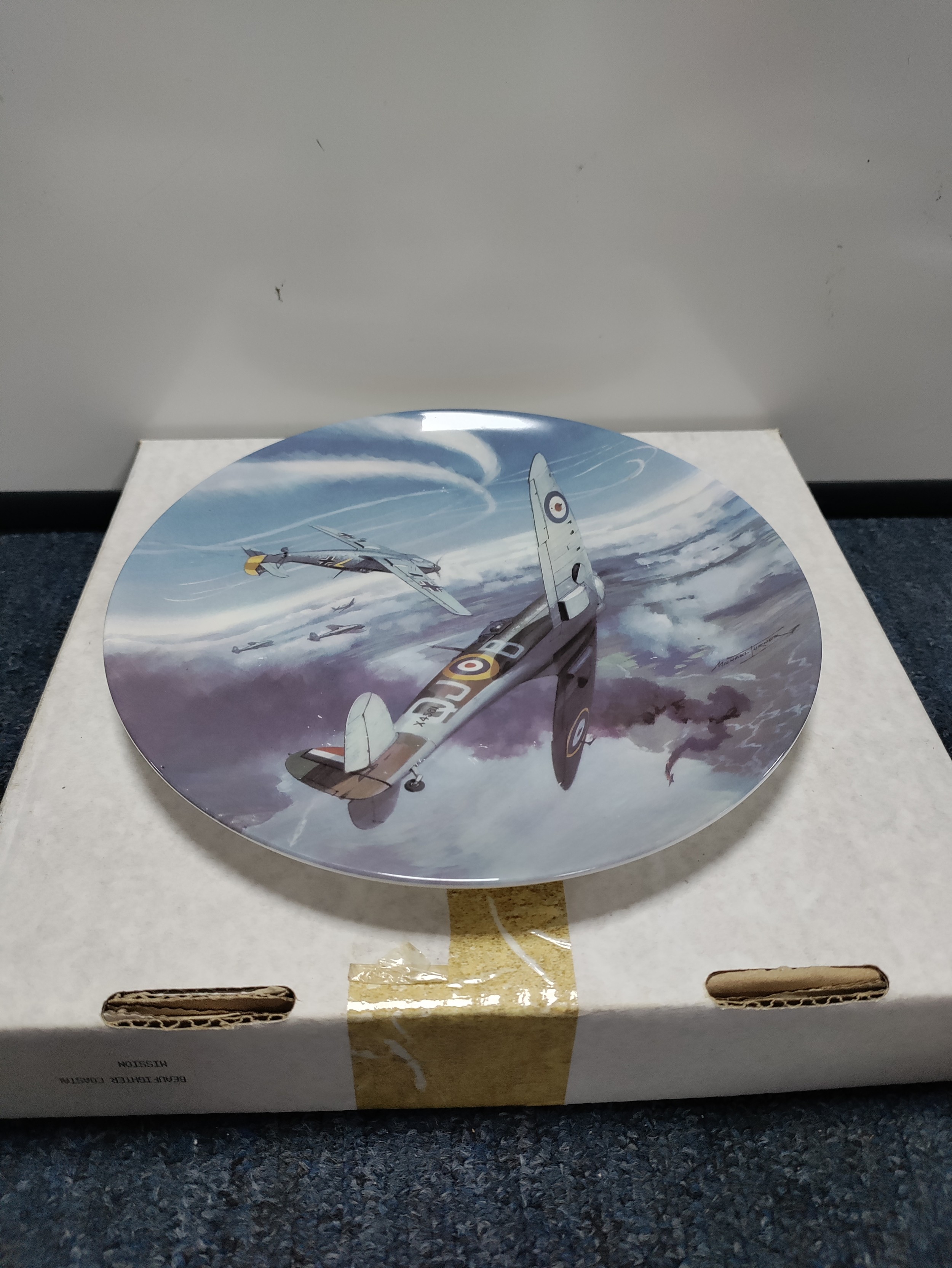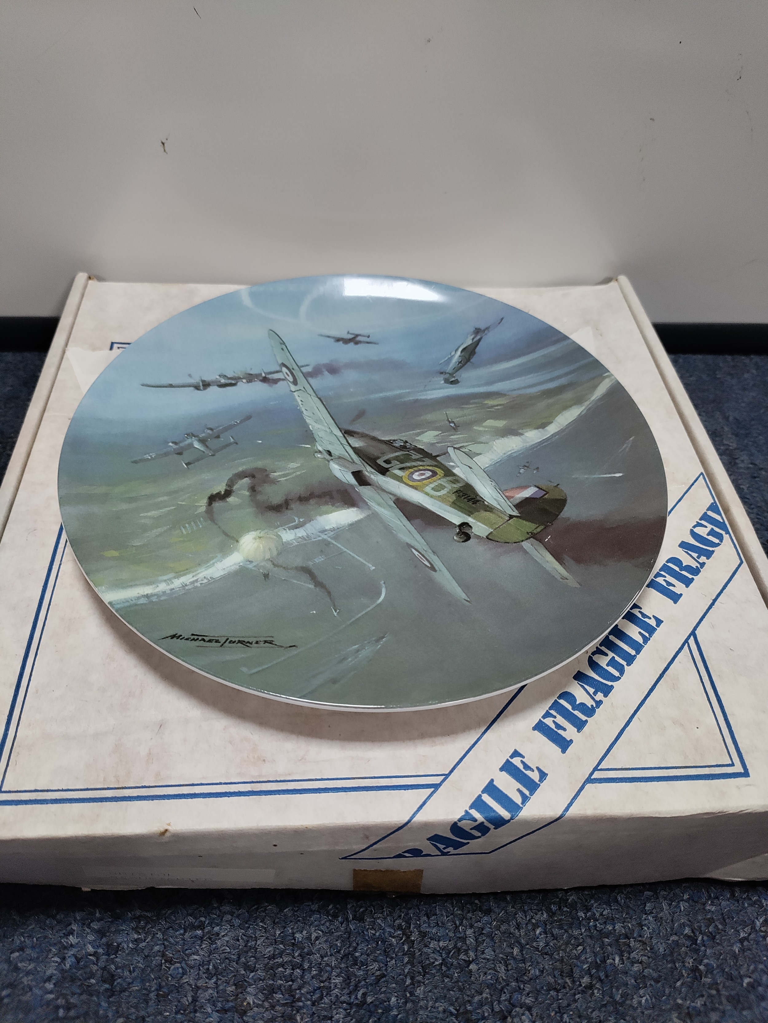 A collection of royal Doulton & Coalport ceramic plates to include "Reaping the Whirlwind", "The Power and the Glory", "Local Heroes" & "Heroes of the Sky" with certificate of authenticity & 6 other ceramic plates. Plates are mostly ww2 planes