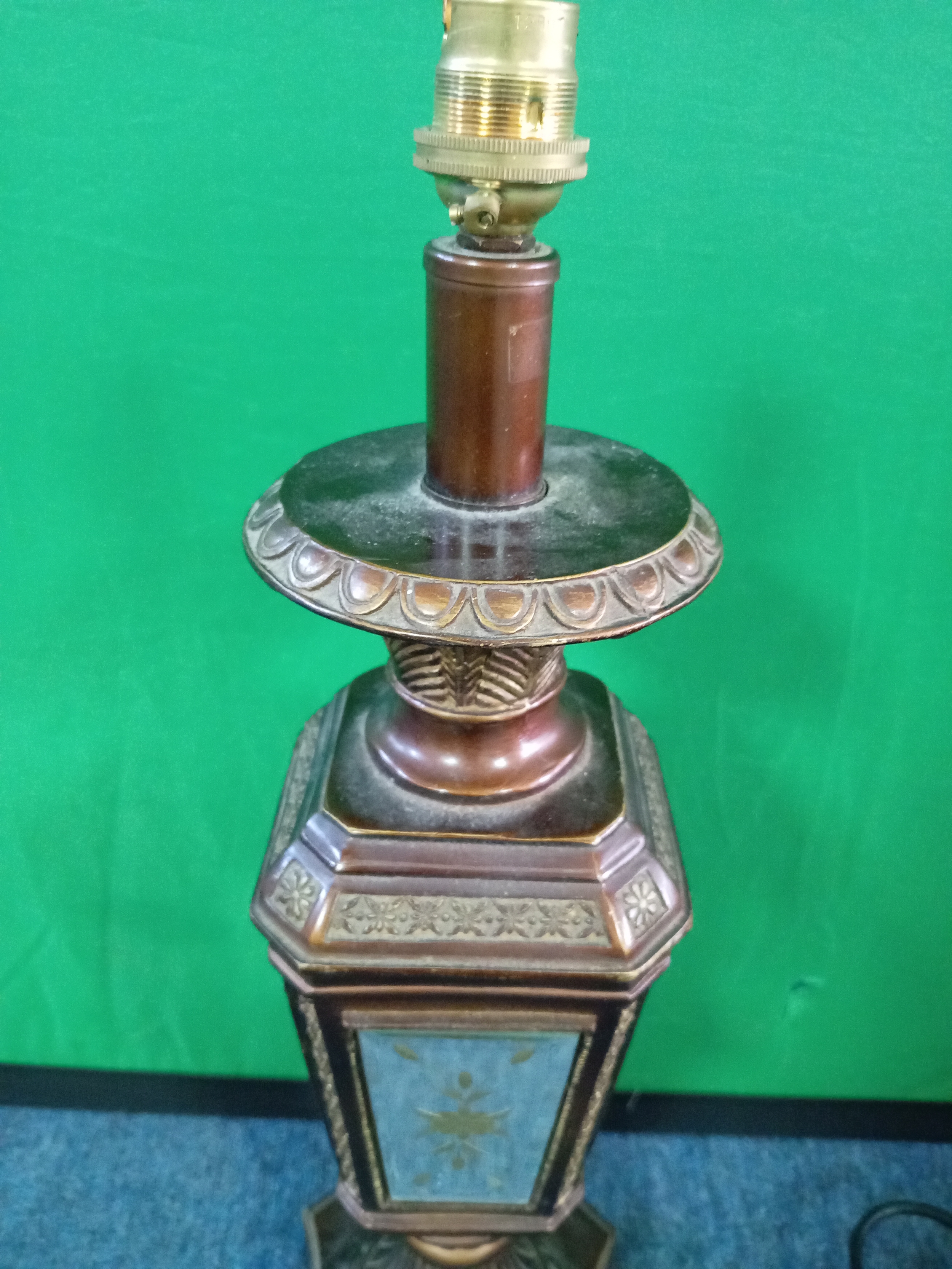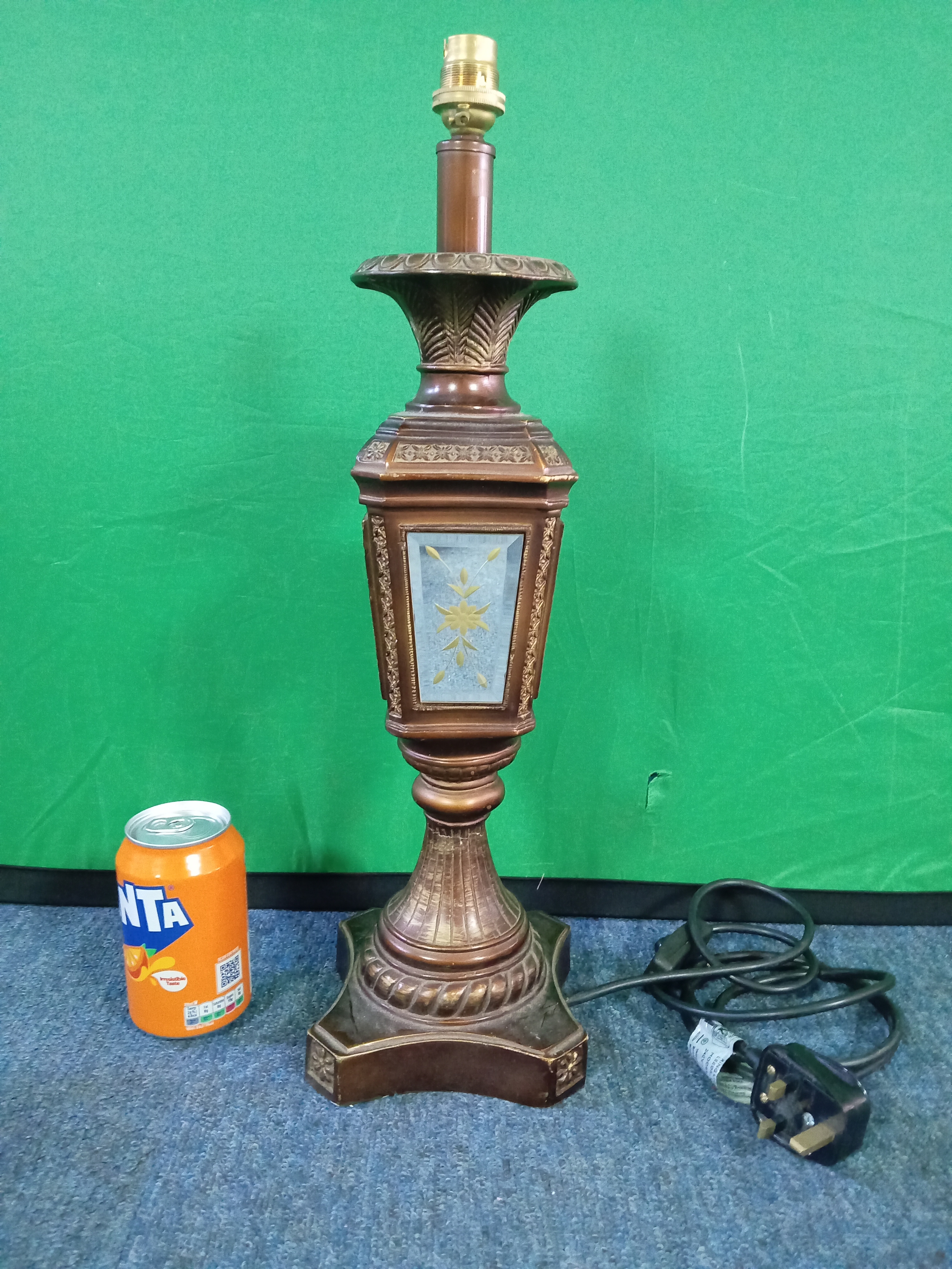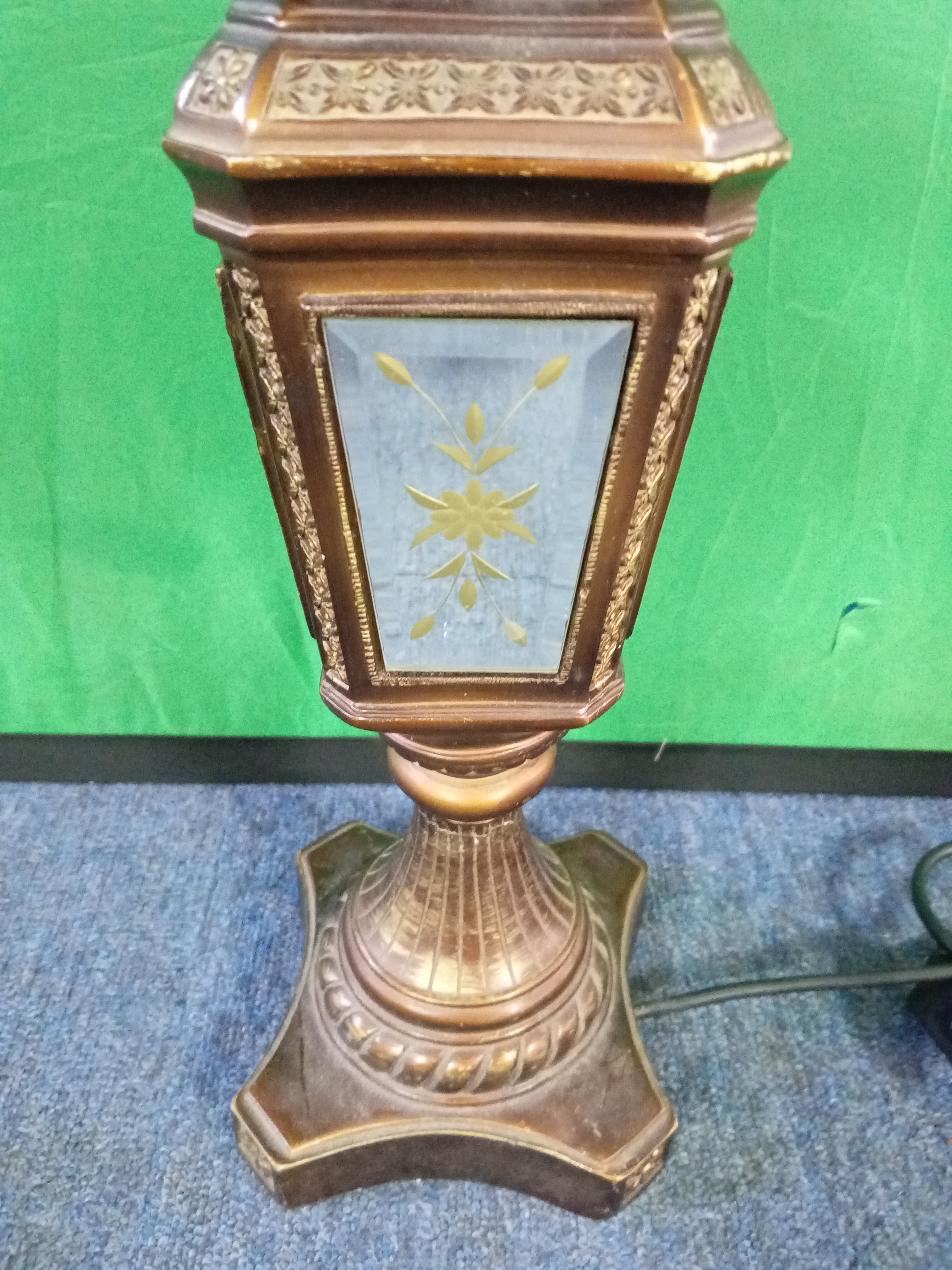 A vintage table lamp set with four mirrors . (H 50cm)