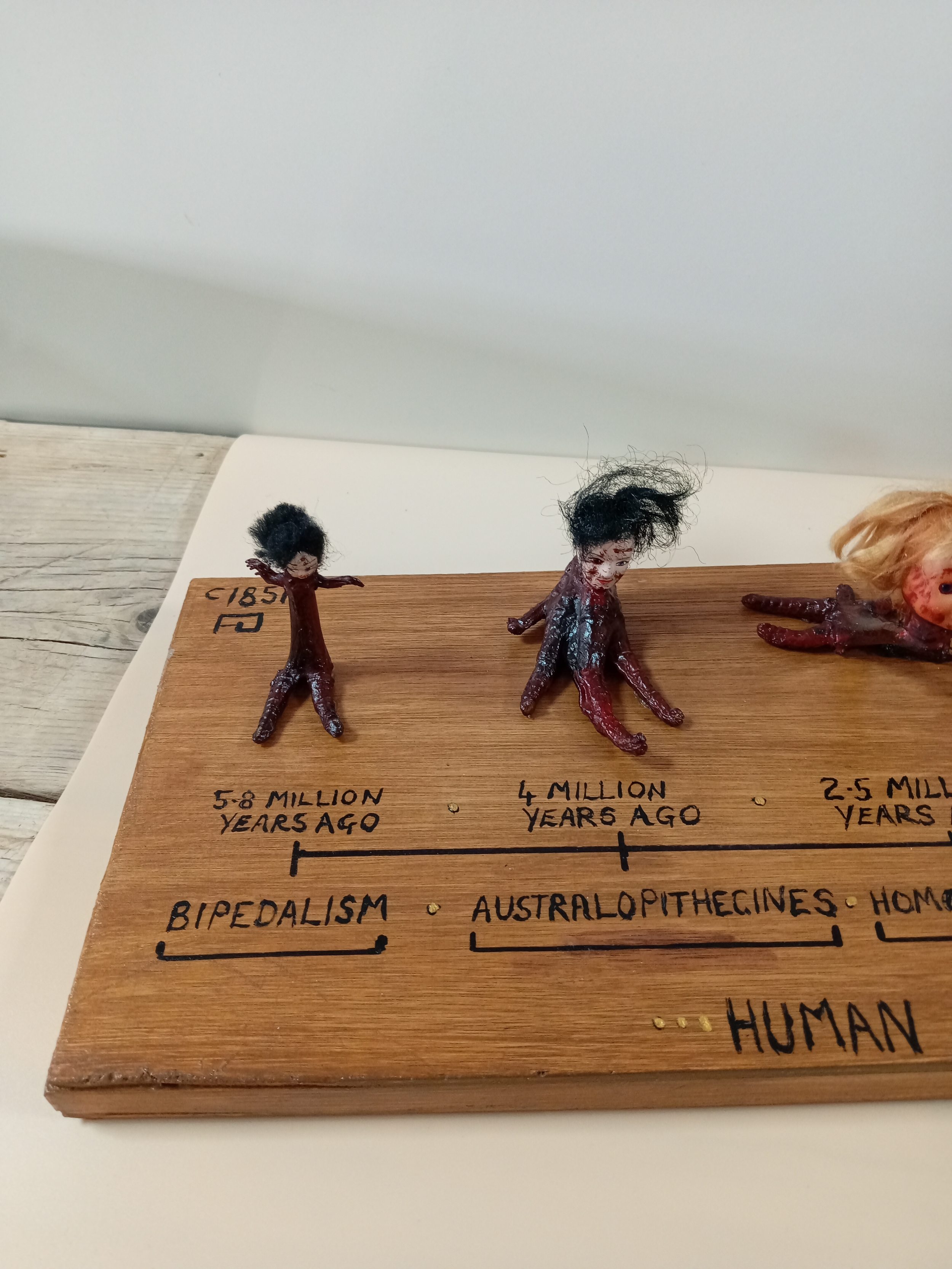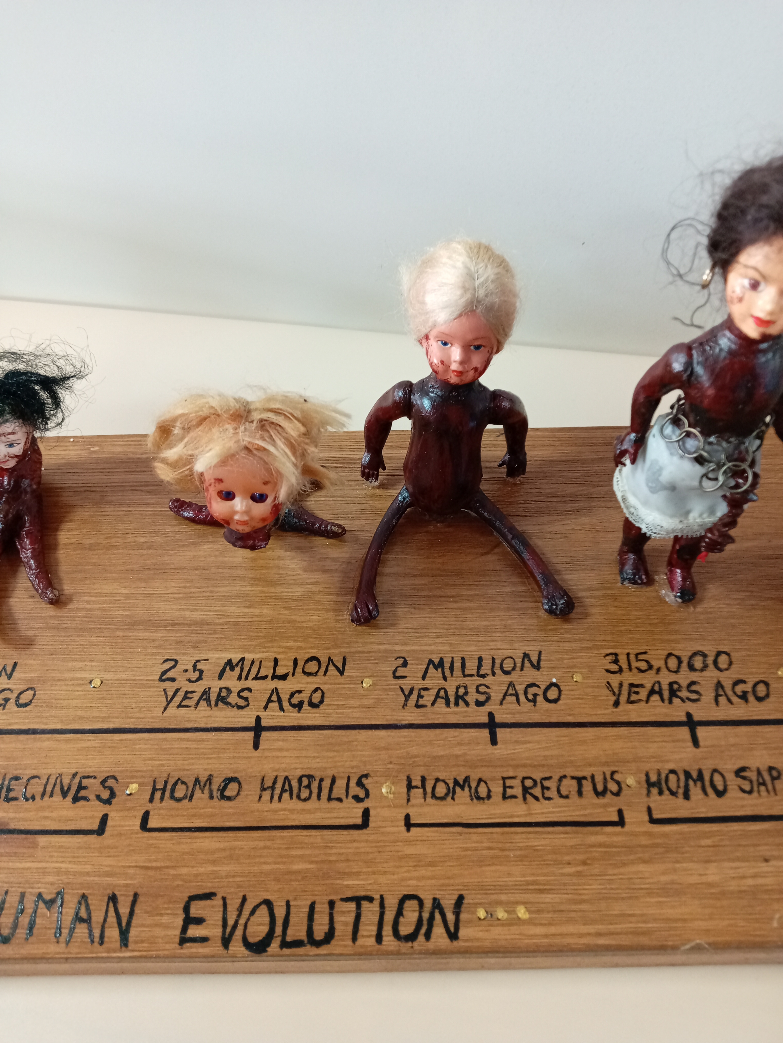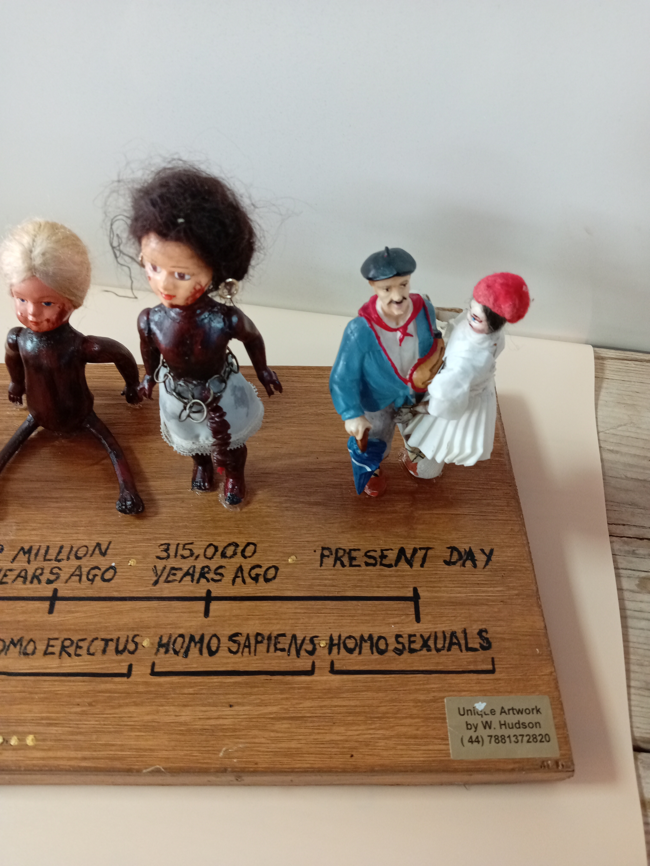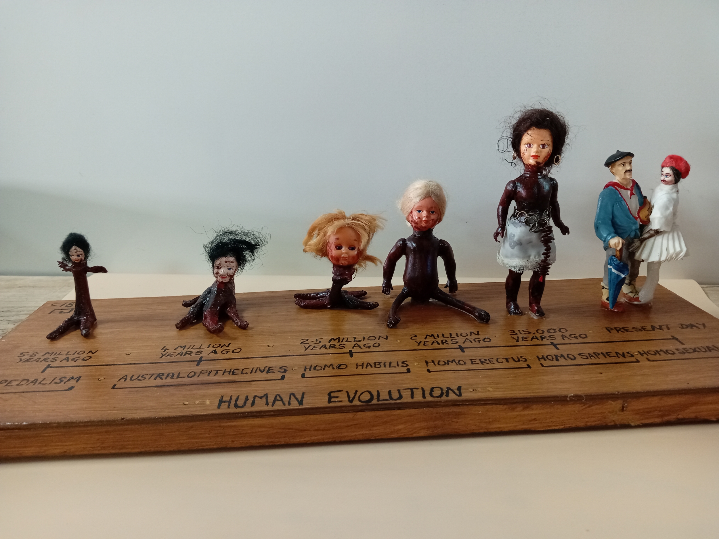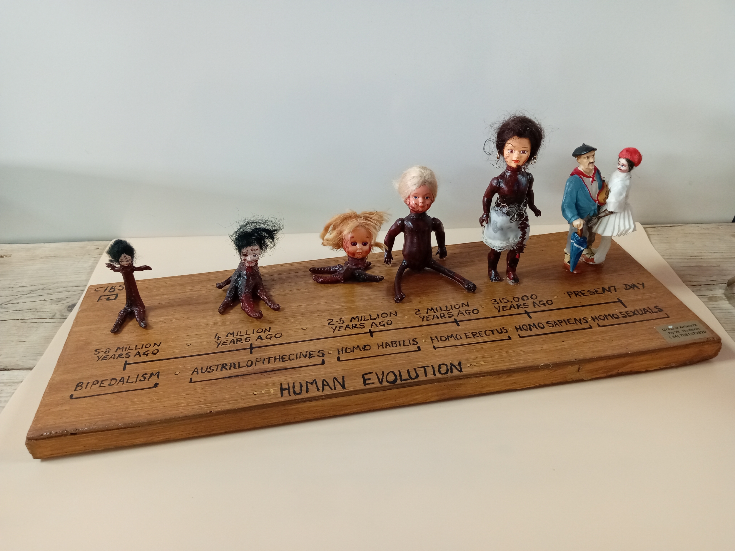 The 'Evolution' of man with a twist by sculpture by W. Hudson.