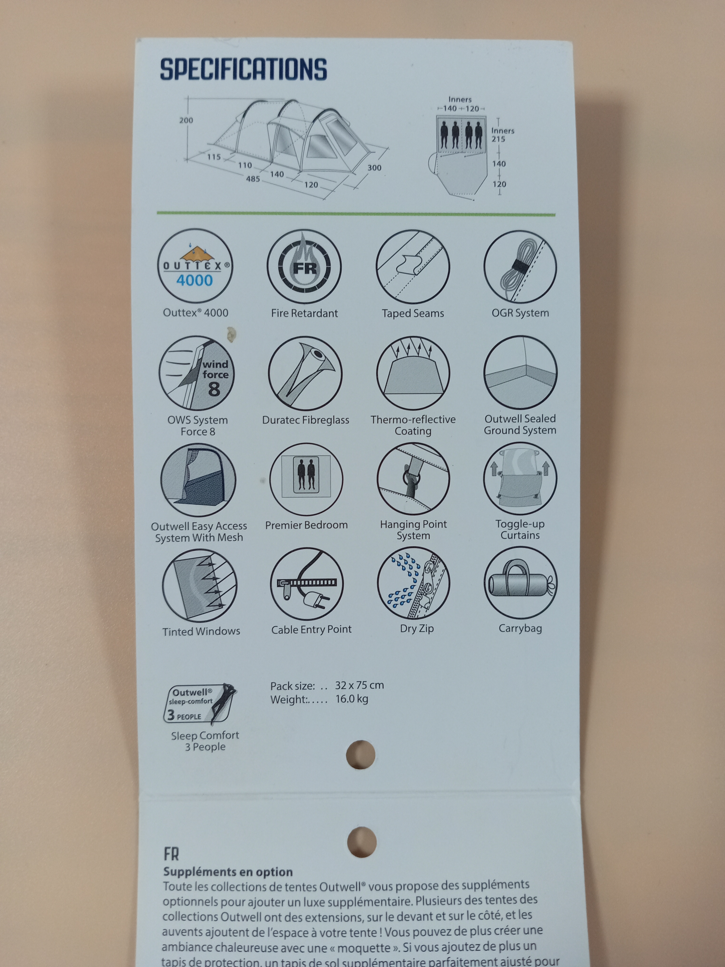 A Outwell Nevada 4 tent, sleeps 3 people. (H 200cm x D 485cm x W 300cm) Only used once for a night in the garden
