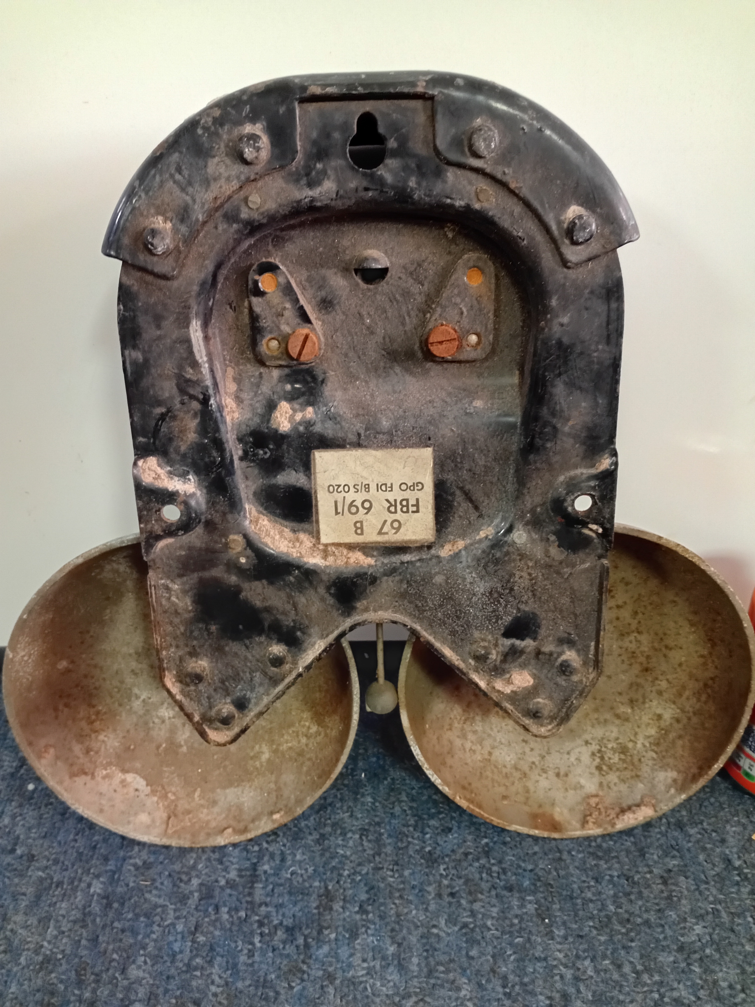 A vintage GPO FDI B/S 020 67 B telephone alarm set.