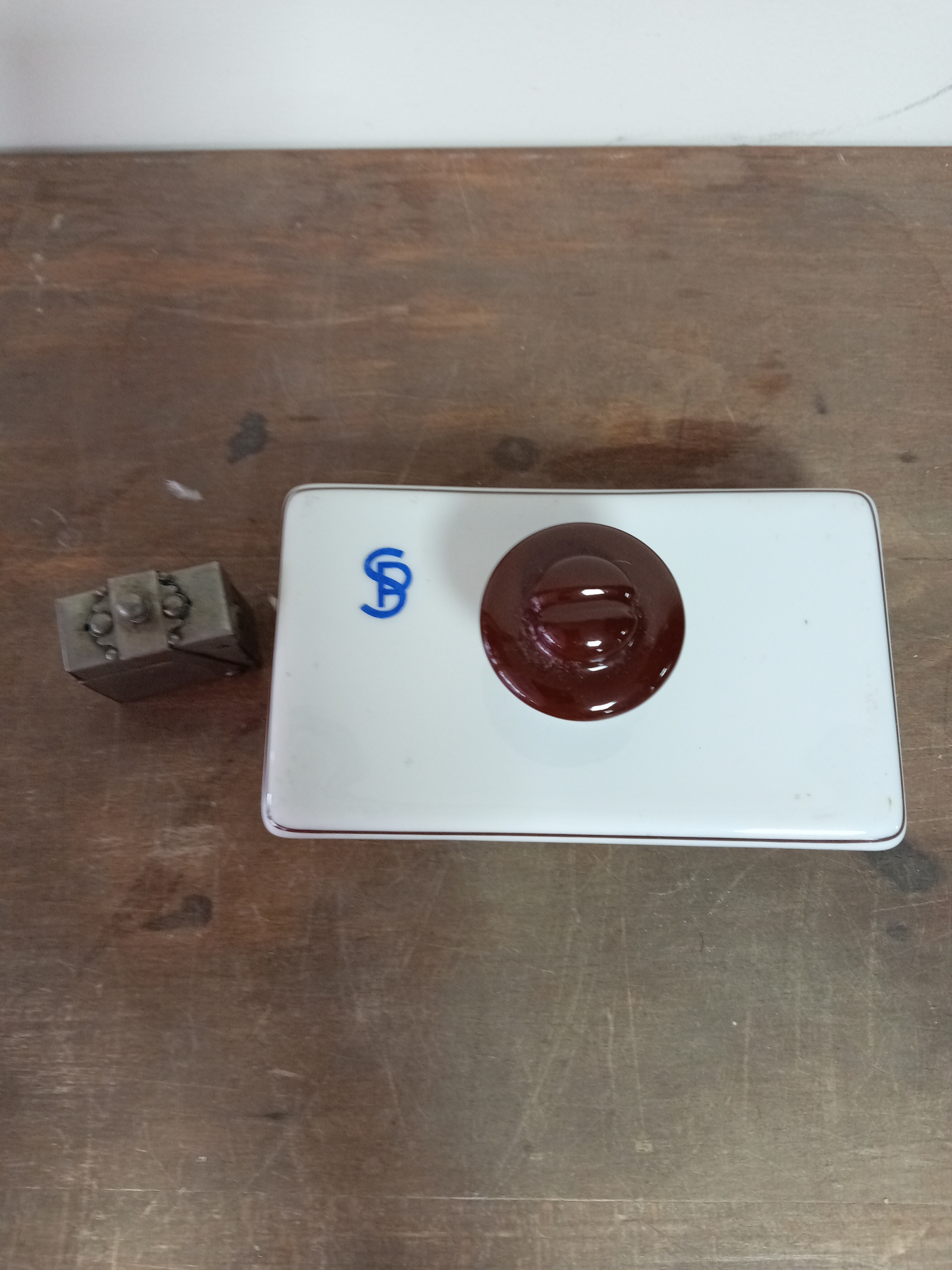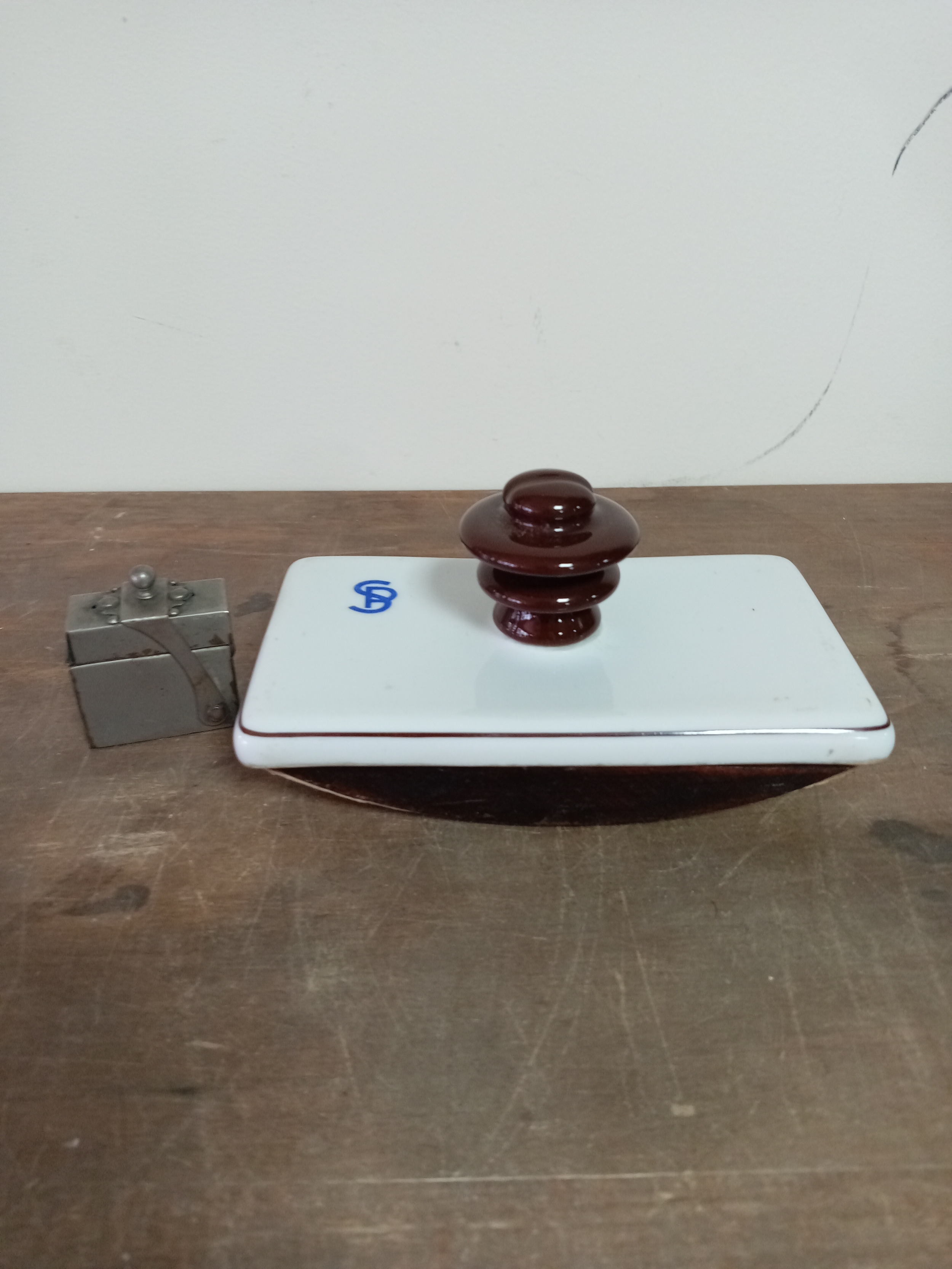 Vintage Ceramic Ink Blotter Roller & Metal Pocket Ink Well Pot