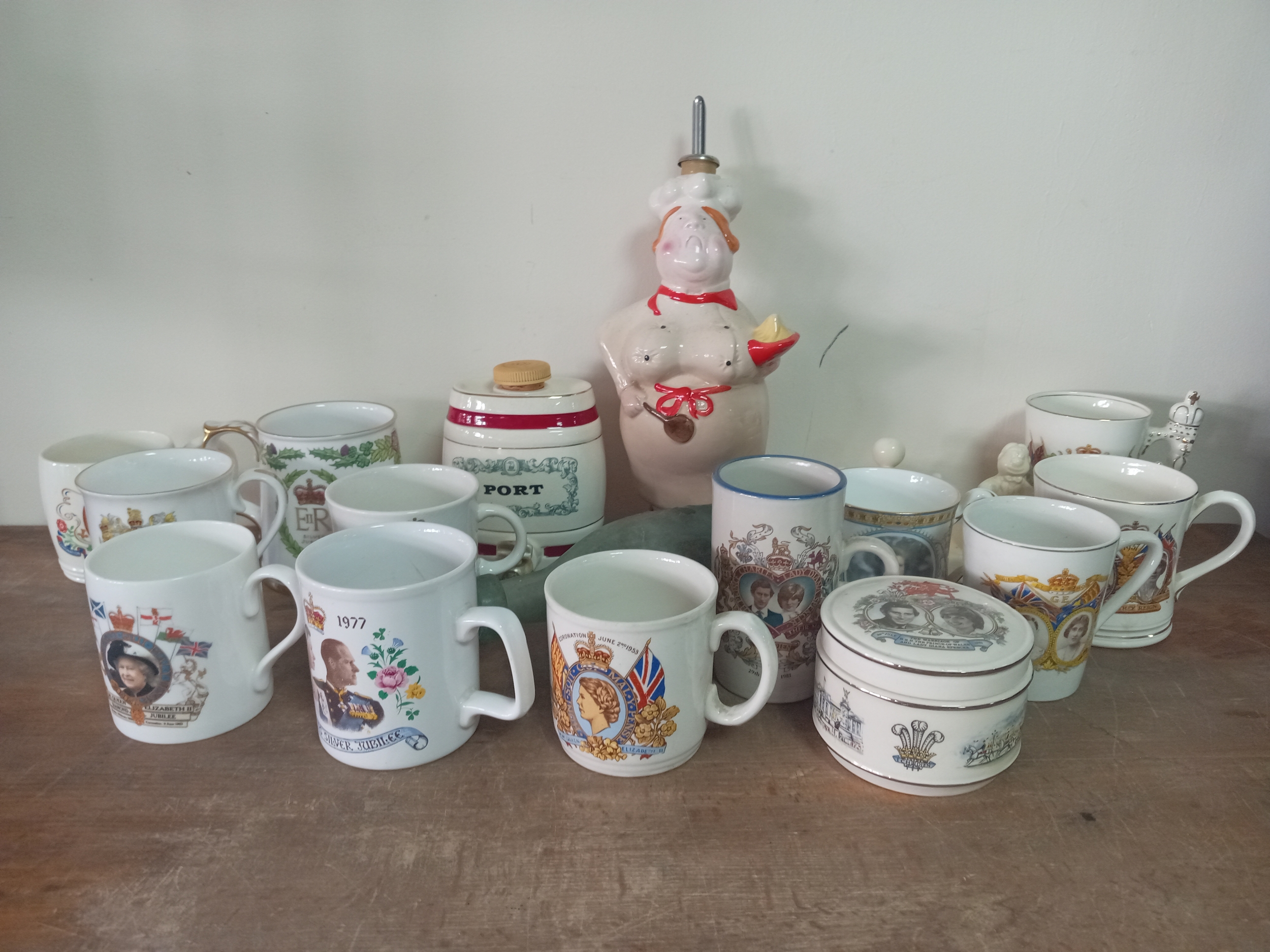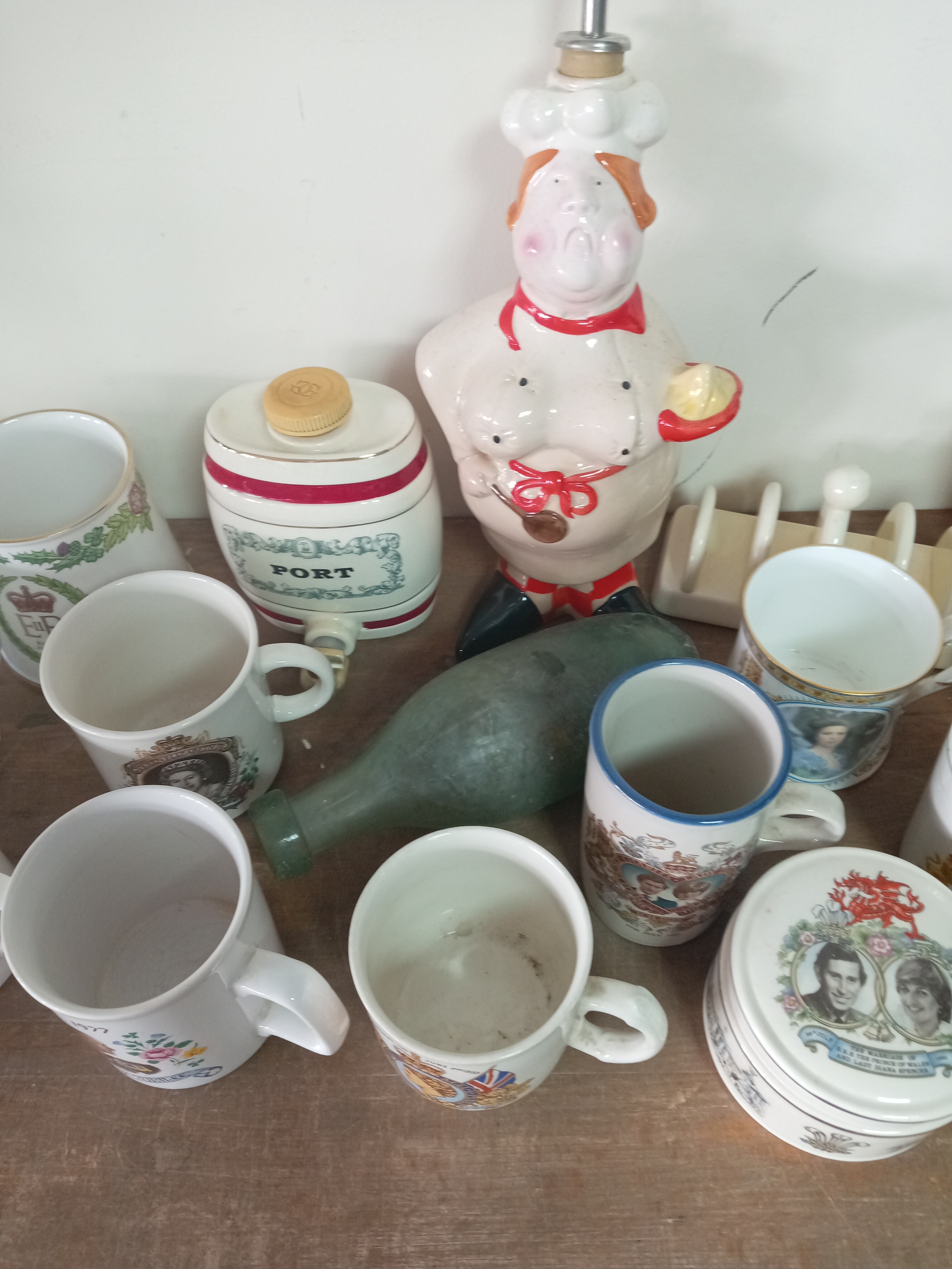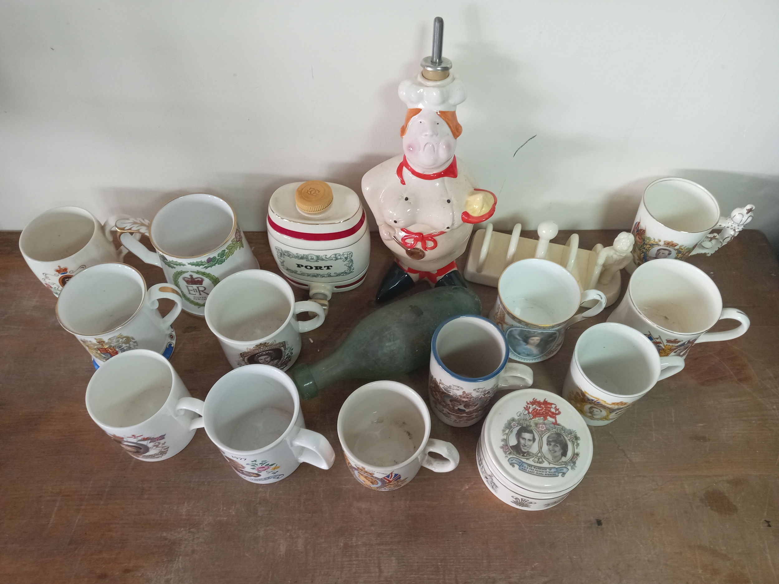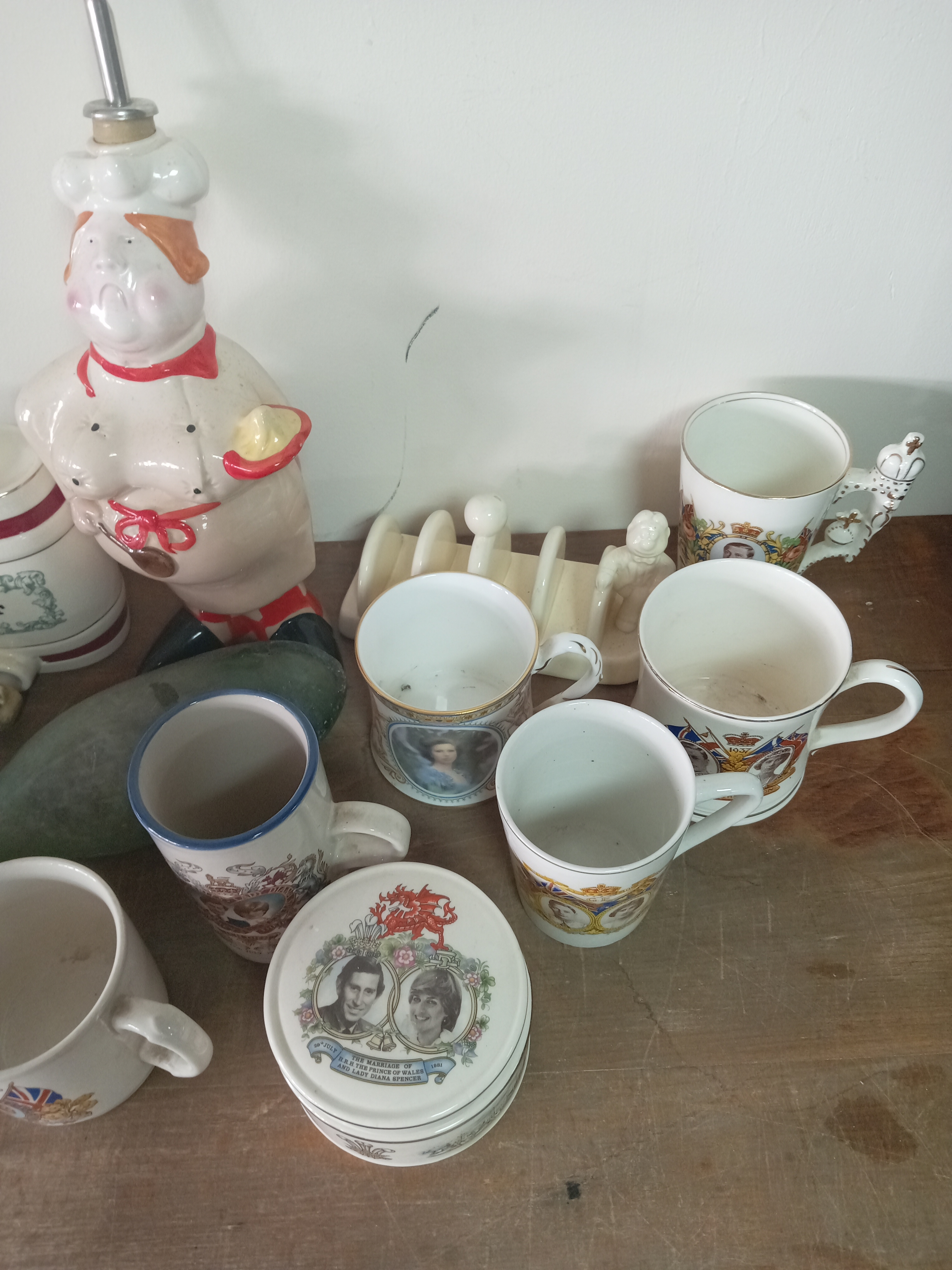 Assortment Of Ceramics Including Royal Family Mugs, Lurpak Toast Holder & Oil Decanter